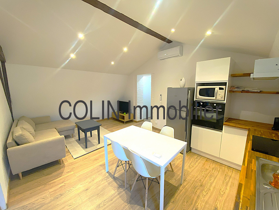 VILLEFRANCHE PROMENOIR: 1er contact exclusivement par email. L'agence COLIN Immobilier vous propose ce magnifique T2 entièrement rénové avec de très belles prestations. Il se situe au 3éme étage sans ascenseur d'une petite copropriété familiale 9 rue Cottinet. Il est entièrement meublé et équipé. Il se compose d'une entrée avec placard, d'une belle pièce de vie pleine de charme avec espace cuisine entièrement équipé (four, plaque, hotte , LV, micro-onde, réfrigérateur/congélateur). Une chambre avec rangement, une salle d'eau avec lave-linge. Nous disposons d'un WC séparé avec lave-main. Ce T2 est très bien agencé, et tout est fait pour votre confort. Chauffage clim réversible. Loyer 650 euros / mois. Pas de charges de copropriété. Vous payez votre abonnement Eau et Électricité. Les honoraires de location à la charge locataire: 450 euros TTC (dont 68 euros TTC pour l'état des lieux ). Dépôt de garantie: 1300 euros (correspondant à deux mois de loyer pour un meublé). Les informations sur les risques auxquels ce bien est exposé sont disponibles sur le site www.georisques.gouv.fr Votre interlocuteur Laurent COLIN, Agent immobilier, et Administrateur de Biens depuis 2004, titulaire de la carte professionnelle Transaction et Gestion 6902 2018 000 025 432 (CCI du Beaujolais). 1 ER CONTACT PAR EMAIL EXCLUSIVEMENT.Dpe