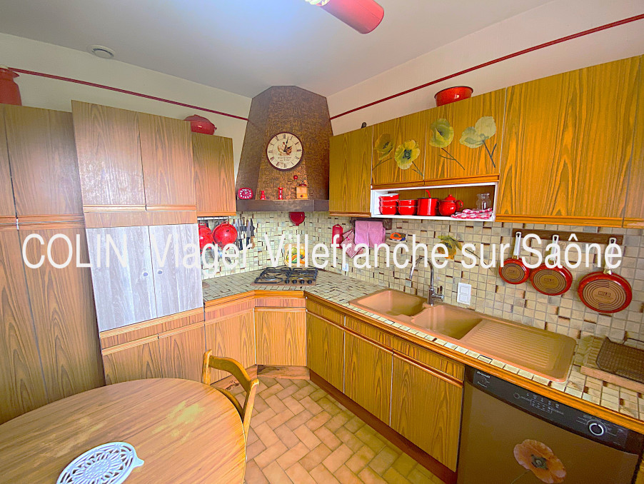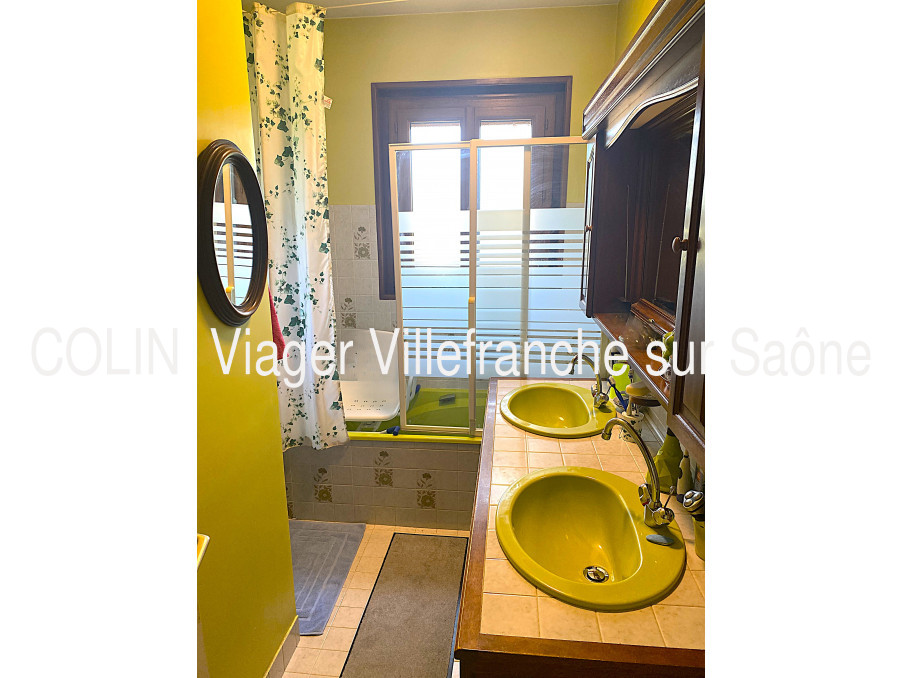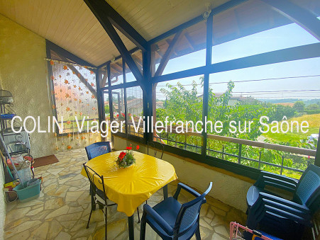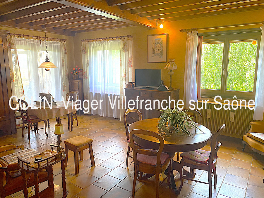 GLEIZE VILLAGE VIAGER OCCUPE: L'agence COLIN Viager vous propose cette jolie villa beaujolaise en viager occupé, sur 2 têtes (Madame: 85 ans et Monsieur: 89 ans). Valeur du bien libre 330.000 euros. Bouquet: 140.000 euros. Rente mensuelle: 714 euros. La vente en viager occupé est destinée à un public d'investisseur avisé. Elle comporte un aléa sur la durée de l'investissement. Le financement doit être assuré par des fonds propres, car -sauf exception- les banques ne financent pas un viager. En cas de libération anticipée du droit d'usage et d'habitation la rente est revalorisée contractuellement. Cette maison est dans un excellent état d'entretien, sur une belle parcelle de près de 1000m2 dans un secteur très calme et champêtre à 2 pas du centre du village de Gleizé. L'étage, d'une surface habitable de 80 m2, comprends une entrée, un séjour double, une cuisine séparée, un WC , une salle de bain, et deux chambres. Nous disposons de plus d'une grande véranda exposée plein sud. Le sous-sol, (hauteur sous-plafond 2,30m.) comprend une cuisine d'été, un bureau et un atelier pouvant aisément servir de chambres (avec de vraies fenêtres donnant sur le jardin), un WC, une chaufferie, une cave, un véritable caveau beaujolais, et un garage. Une fois réaménagé avec facilité le sous-sol peut donc présenter 35m2 supplémentaires avec possibilité d'aménager 2 chambres et une salle de bain (très simple, techniquement). Chauffage au gaz. Double vitrage. Volets roulants électriques à l'étage. Classe énergétique D. Consommation énergétique totale annuelle entre 1010 euros et 1420 euros. Honoraires charges Vendeurs.Les informations sur les risques auxquels ce bien est exposé sont disponibles sur le site www.georisques.gouv.fr Votre interlocuteur Laurent COLIN, Agent immobilier, et Administrateur de Biens, depuis 2004, titulaire de la carte professionnelle Transaction et Gestion 6902 2018 000 025 432 (CCI du Beaujolais).Dpe